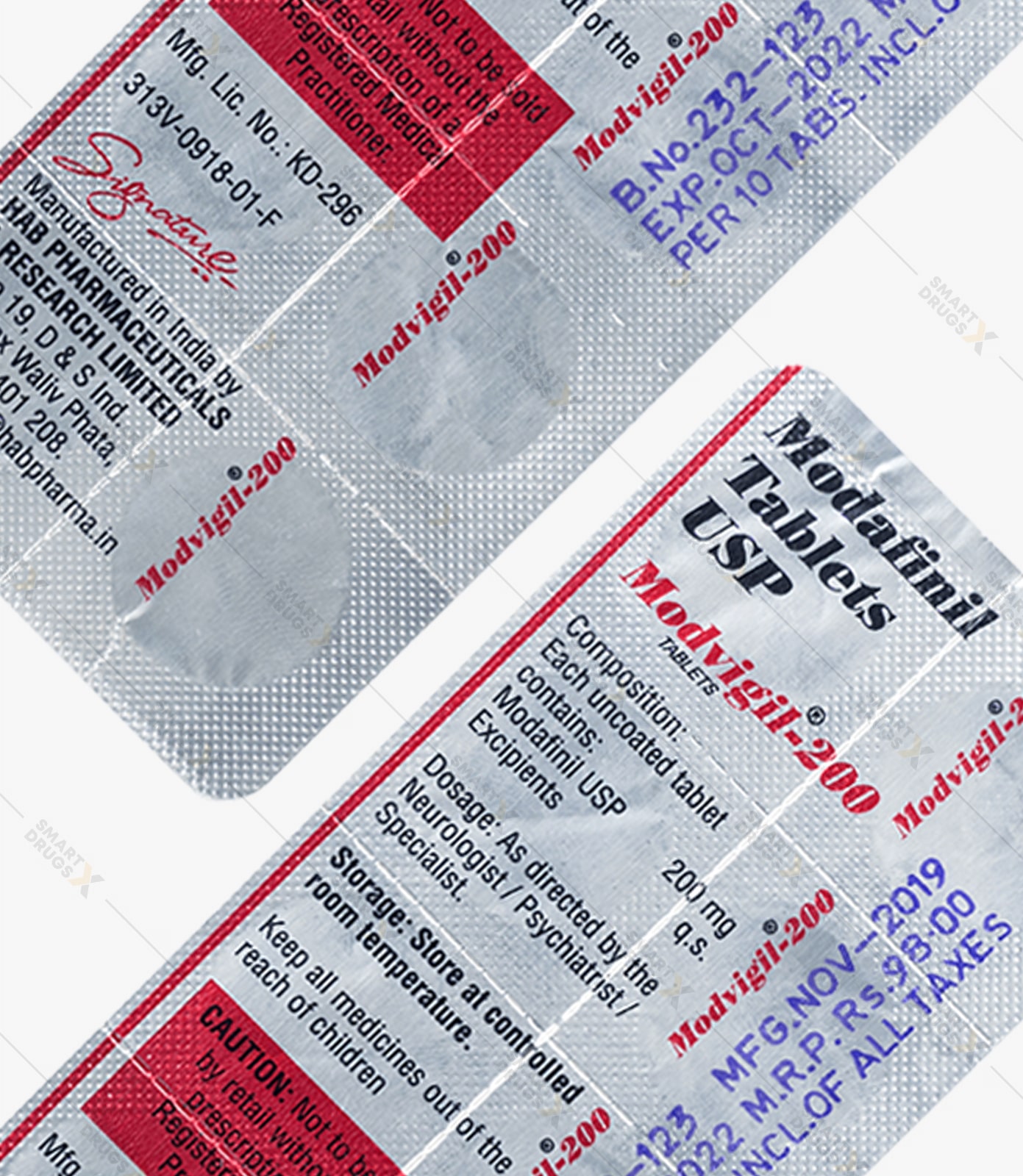 Modvigil is sold in blister packs containing 10 tablets per strip. Modvigil blister strips are less malleable than the Modalert strips. However, Modvigil strips may be torn apart using the perforated lines provided.